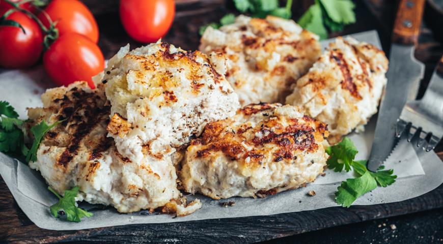Huhn gehackt, Salz, Pfeffer, Butter, Sahne, 1 Birne, Semmelbrösel - Alle Zutaten mischen und 30 Minuten gehackt Kühlschrank. Form dann die Koteletts aus ihm heraus, schneidet sie in den Brotkrumen oder -würfel einer fein gehackten Stab. Finger Koteletts auf mittlerem Feuer in einem Paar von Minuten auf jeder Seite und drehen, bis die Bereitschaft.