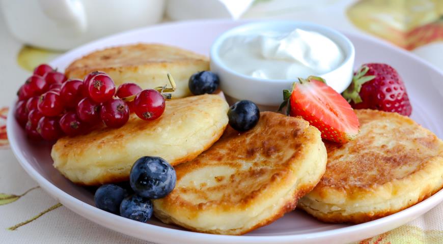 Cheesecakes sind ein ausgezeichnetes Frühstück Option. Wir bieten Ihnen eine unerwartete Version von sanften Ricotta. Mischen 500 Gramm Käse mit einem Ei, 80 g Mehl. Zucker und Salz abschmecken. Schuss aus der resultierenden Birne, schneiden Sie sie in Mehl und braten in einer Pfanne, bis goldene Farbe.