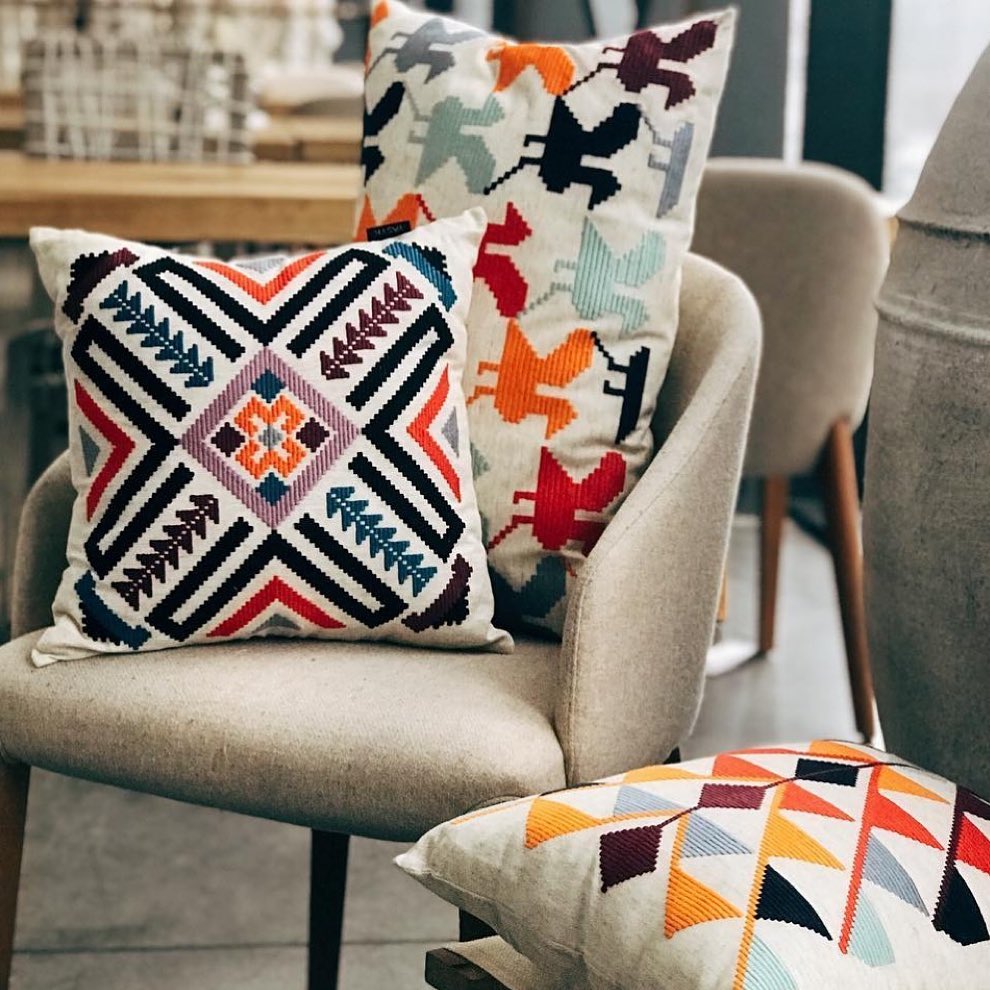 Verwenden Sie Textilien auf das Maximum. Mehrfarbige Kissenbezüge, dekorative Servietten, gemütliche Decken und Teppiche - solche Kleinigkeiten hinzufügen Komfort zum Inneren. Vielleicht möchten Sie sogar die Nadel und den Thread aufnehmen und ein paar Abende für die Herstellung des ursprünglichen Dekors passieren.