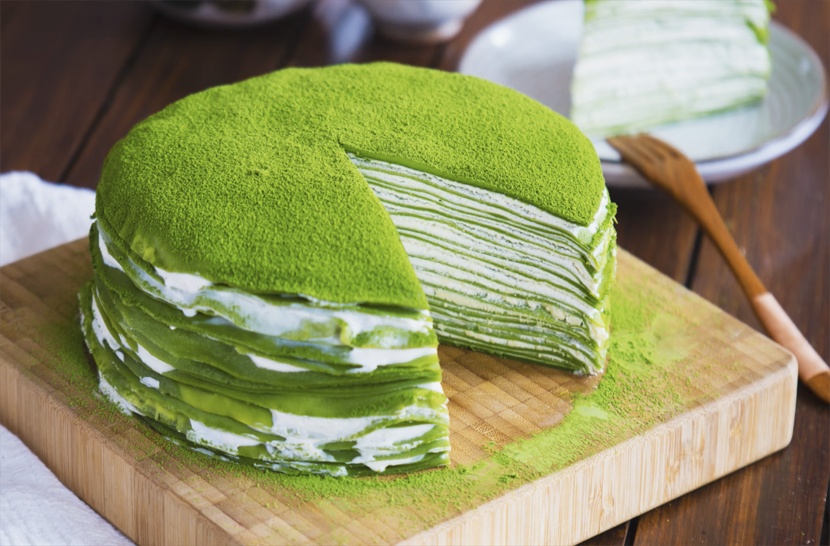Ein Pancake-Kuchen ist ein klassischer französischer Dessert. Normalerweise besteht es aus 10-20 Schichten. Die japanische Variation ist auch sanft und luft, unterscheidet sich jedoch durch einen speziellen, leicht verjüngenden Geschmack, dank des japanischen Tees des Spiels. Verwenden Sie für Sahne frische Schlagsahne. Chic und ungewöhnlicher Kuchen für jede Feier!