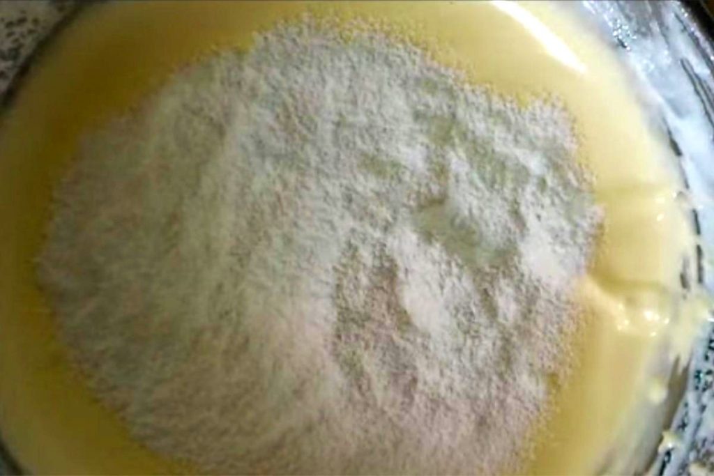 Weizenmehl, Honig und Milch hinzufügen allmählich der Masseein Löffel in einer Richtung rühren. Schießen Sie mehrmals die Schüssel über den Tisch und beseitigen Sie große Luftblasen.