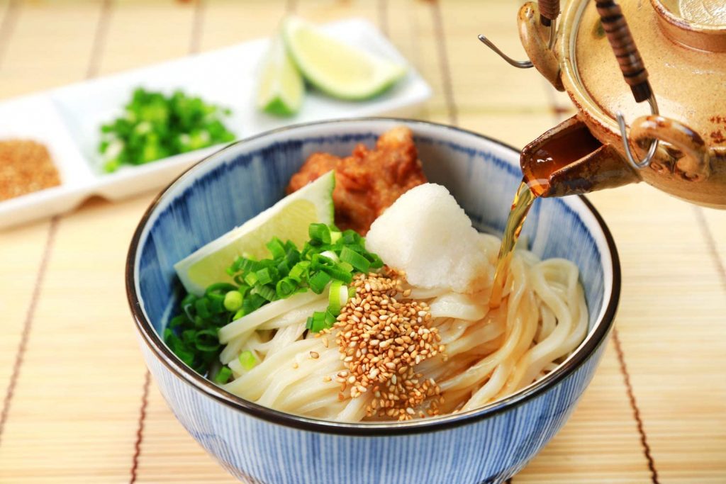 In Japan gibt es eine große Auswahl an Optionen zum Kochen von Udon. Die beliebtesten Komponenten der Suppe sind Garnelen, Tofu-Käse, Shiitake-Pilze, Fischstöcke und Tempura.