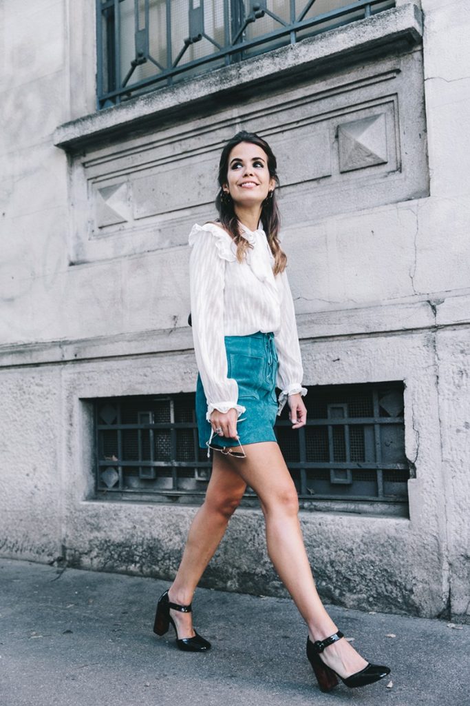 Mary Janes Schuhe mit abgerundeter Socke, Riemen und massiven Schnallen in Retrostil führt in der Liste der Mode-Trends dieses Herbstes. Sie sind sehr vielseitig. Sie können sogar mit dichtem Strumpfhosen getragen werden, was bei kaltem Wetter sehr relevant ist. Solche romantischen Schuhe sind leicht zu mischen, mit Herbstkleidern, plissierten Röcken, gemütlichen Strickjacken, Jeans und modischer Kofferraumhose.
