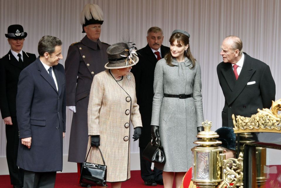 Im klassischen Kleidungsmantel und einem Hat-Tablet - Carla Bruni auf einem offiziellen Besuch mit ihrem Ehemann Nicolas Saarkazi.