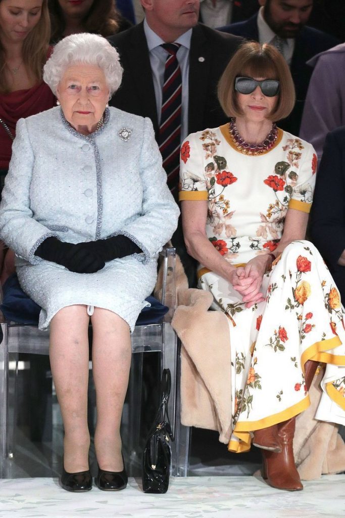 Anna Wintour und Queen Elizabeth II erfüllten sich auf einer der Impressionen London Fashion Week. Zwei Frauen - zwei Legenden.
