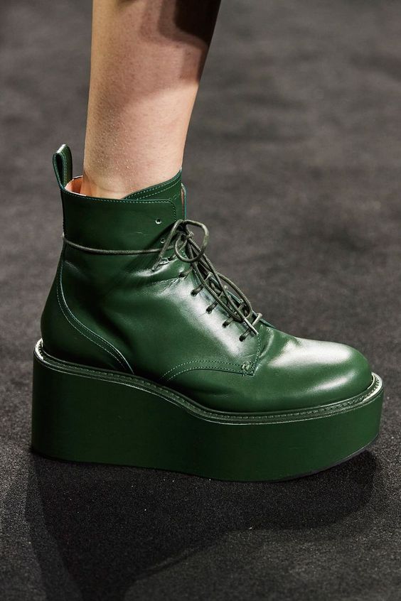 Massive Sohle-Designer haben nicht nur Chelsea ausgezeichnet. Stiefel, Schuhe und Knöchelstiefel auf einer hohen Plattform helfen Ihnen, zuversichtlich durch die Pfützen dieses Herbstes zu gehen. Solche Schuhe sind ein klarer Bezug auf die Disco-Ära. Sie müssen jedoch nicht die Wahl für Begräbnissträger, reichlich dekorierte Modelle, wie die Fans des legendären Club Studio 54 an. Bleiben Sie in laconfarbenen Stiefeln oder -stiefeln, in deren Entwurf, deren Eleganz unauffällig mit der Bequemlichkeit verbunden ist.