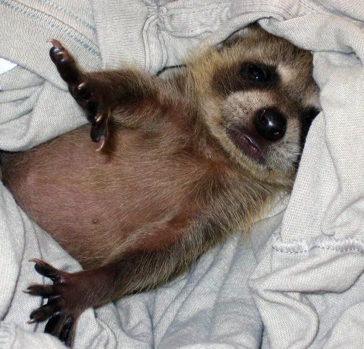 Junge Waschbären sind blind geboren und ohne Zähne. Die Zähne werden am 20. Tag abgeschnitten. Nach 4-5 Monaten werden junge Raccons unabhängig und sind bereit, ohne die Mutter ohne Hilfe der Mutter auszutreiben.