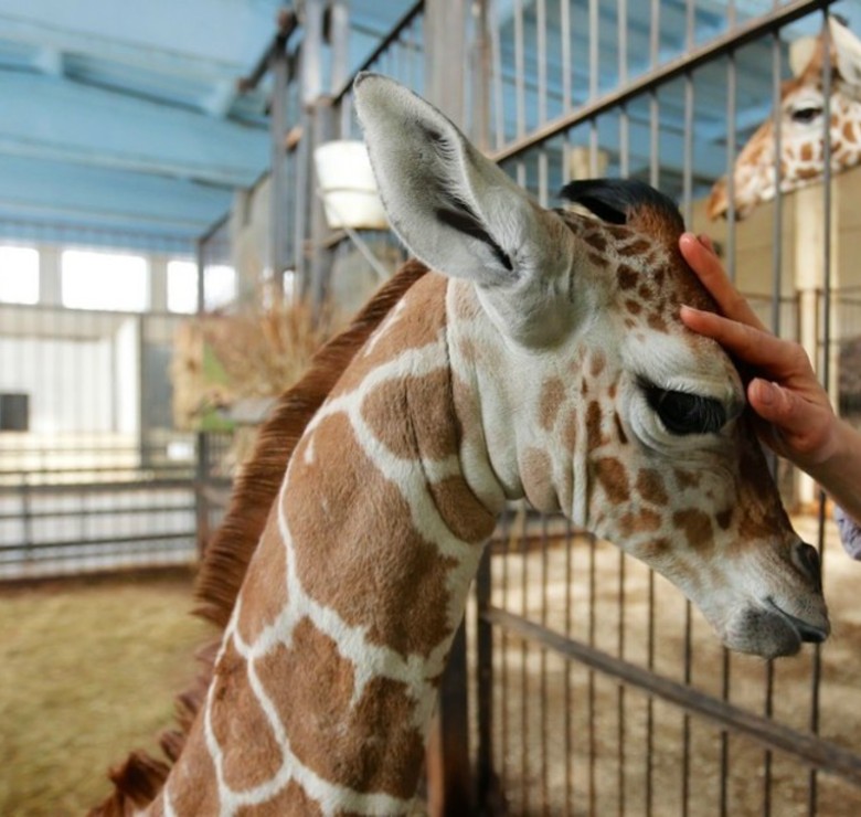 Die neugeborene Giraffe fällt aus einer Höhe von 1,5 Metern auf den Boden. Um keine einfache Beute für Raubtiere zu werden, kann die Giraffenfrau nicht sich hinsetzen oder während der Geburt hinlegen. Ihre Junge steigt fest auf den Füßen für eine Stunde nach der Geburt an! Erwachsene erreichen Höhen bis zu 6 m und wiegen etwa eine Tonne.