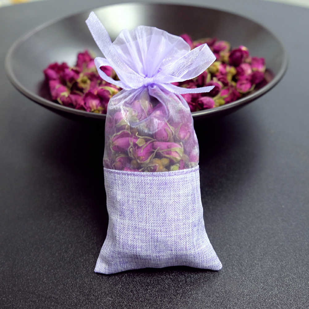 Prächtige duftende Kissen und Lufterfrischer werden von Rosen erhalten. Trockene Blütenblätter und Knospen setzen in kleine Säcke aus natürlichem Stoff und berühren sich fest. Die Zusammensetzung kann mit Gewürzen oder duftenden Kräutern verdünnt werden. Und für größere Aroma zögern Sie, mit ätherischen Ölen zu beschädigen.