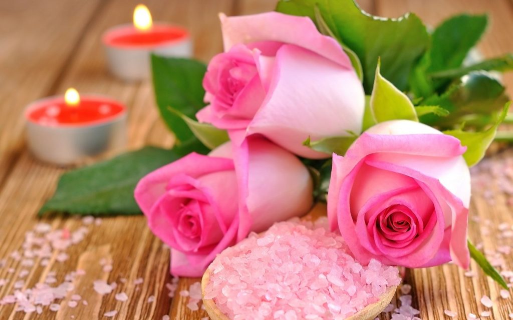 "Rosa Salz" perfekt tönt und befeuchtet die Haut, beseitigt das Abziehen und sättigt den Körper der Energie. Bereiten Sie es zu Hause sehr einfach vor. Mahlen Sie in einem Mixer oder Kaffeemühle trockene rosafarbene Blütenblätter an einem Pulverzustand und mischen Sie mit Meersalz. Fügen Sie dann ein paar Tropfen Ihres Lieblingsöls hinzu. Persönliches Salz im Glas, gut und lässt es für eine Woche stehen.