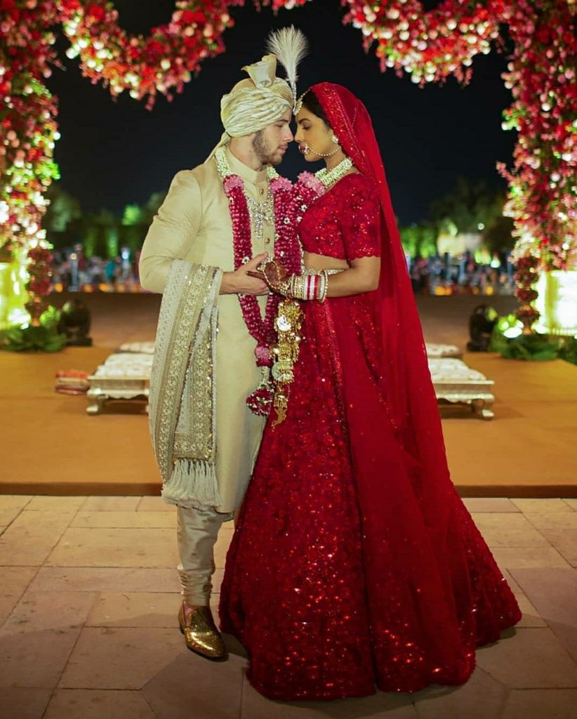 Die lang erwartete Hochzeit fand am 1. Dezember 2018 in Indien statt. Laut lokalen Traditionen dauerte die Hochzeitsfeier mehrere Tage und fand in verschiedenen Städten statt. Jodhpur, Delhi, Mumbai - Jungverlyweds inszenierte vier üppige Zeremonien und eine kleine Cocktailparty für Freunde. Die Braut hatte natürlich mehrere Hochzeitsbilder. Das charmanteste, unserer Meinung nach war ein schneeweißes Kleid Ralph Lauren, in dem ein angenehmes Angenehm in der christlichen Zeremonie im indischen Palast von Madaid-Bhavan erschien.