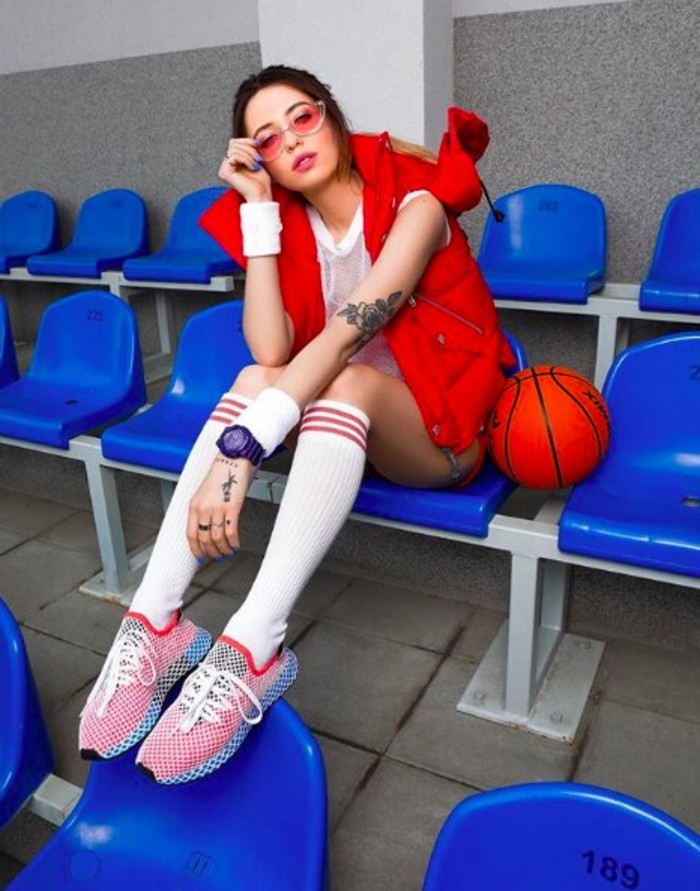 Nach 10 Jahren musikalischer Karriere veränderte sich Nadi Dorofeeeva merklich, der Sport ging zum Hintergrund. Seine Bilder sind noch hell und shuffle, aber mit einer Notiz der erwachsenen Weiblichkeit. Spektakuläre Röcke und Lederjacken, stilvoller Körper mit einem tiefen Ausschnitt und Schuhen auf einer massiven Sohle - dies sind die Dinge, in denen Sie den Sänger am häufigsten betrachten können.