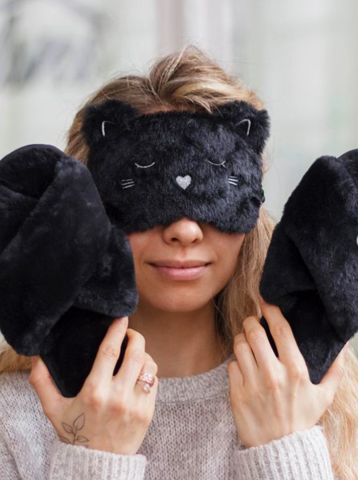 1. Gemütliche Hausschuhe und Schlafmaske.