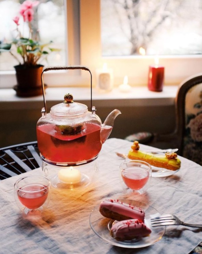 15. Tee Set: Kaufen Sie einen sauberen Wasserkocher mit Tassen und Tee in einem schönen Glas.
