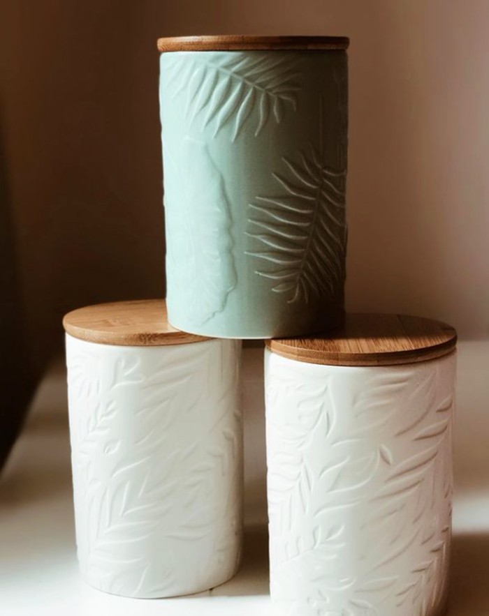 14. Keramikgläser zum Speichern von Kruppen. Es ist so angenehm, wenn es auf Küchenregimenter bestellt ist, und alles hat seinen Platz.