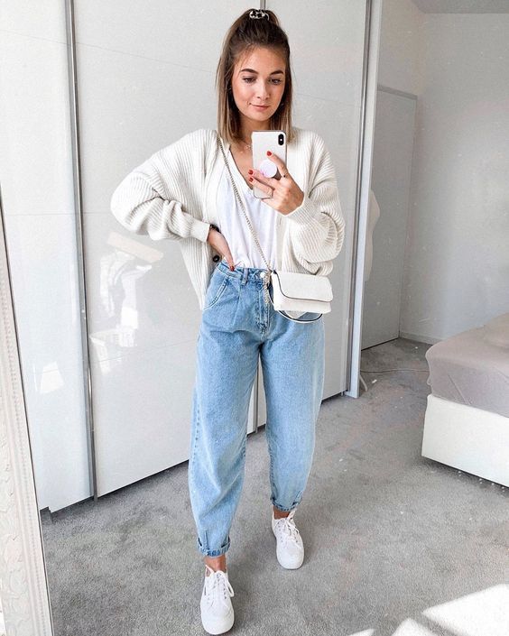 Slouds sind eine Art Hybrid "Bananans" und Mom Jeans. Für ein solches Modell ist ein volumetrischer Schnitt durch ein Buch gekennzeichnet. Universelle Sludes eignen sich für jede Art von Form. Mit ihrer Hilfe kann der Besitzer von breiten Schultern die Silhouette leicht ausgleichen. Wenn Sie eine Figur plus Größe haben, helfen Ihnen diese Jeans, dass Sie volle Hüften verbergen und sich auf die Knöchel und Taille konzentrieren. Slouds werden zur Rettung kommen und diejenigen, die einen spürbaren Kontrast zwischen den Hüften und der Taille schaffen möchten.