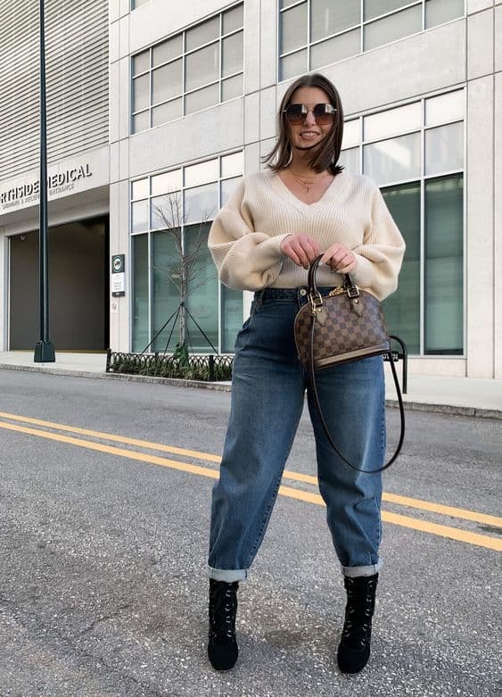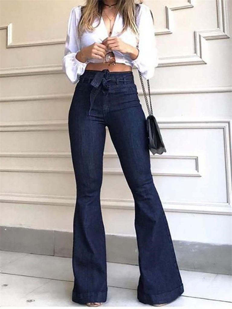 Jeansboote sind eines der beliebtesten Modelle auf der ganzen Welt. Für solche Jeans ist die enge Oberseite vom Knie eine spürbare Expansion. Die Länge kann völlig anders sein. Interessante und relevanteste Option heute - Länge 7/8, elegante Freigabe von Knöcheln. Aufgrund der Jeans können die Jeans über den Stiefeln oder Schuhen getragen werden, und in Kombination mit hohen Absätzen - es ist auffällig, die Beine zu verlängern und scheinen schlanker zu sein.