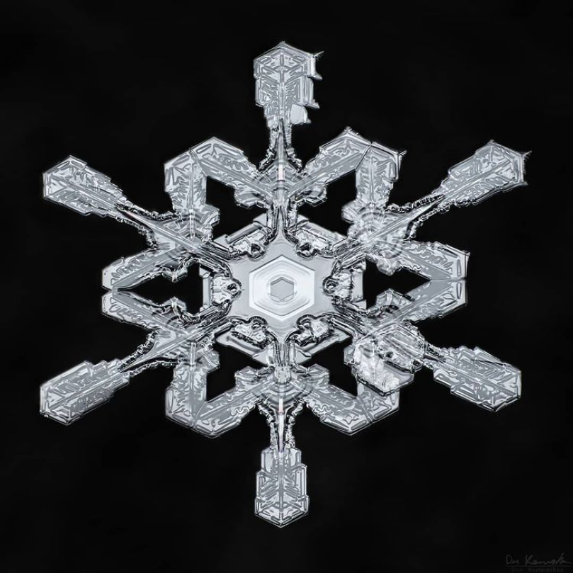 Schneeflocke ist ein kleines Wunder der Natur. Je näher Sie es ansehen, desto mehr bemerken Sie die Details. Wir hatten Glück: Modernes Makro-Objektiv ermöglicht es Ihnen, die Schneeflocke in den kleinsten Details aufzunehmen. Schauen Sie sich die erstaunlichen Bilder des Fotografen aus Kanada anDon Komarechka. (Don Komarechka). Sie öffnen unsere andere, völlig neue Realität.