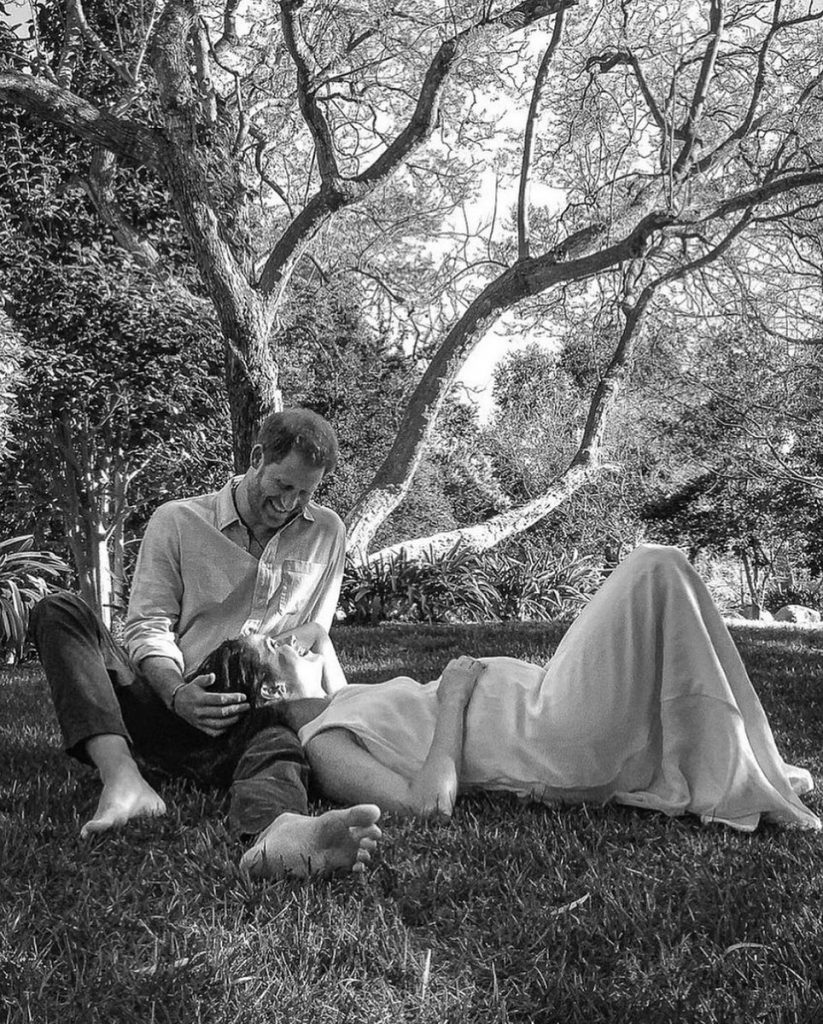 Die Ehepartner teilten auch einen Schnappschuss, auf dem die Herzogin den abgerundeten Bauch demonstrierte. Das Foto wurde remote über das iPad gemacht. Dabei wurden sie von ihrem Freund, Fotografen Missan Harriman, geholfen. Luxus Megan hat das Kleid von Carolina Herrera ausprobiert, das während der ersten Schwangerschaft von Herzogin genäht wurde.