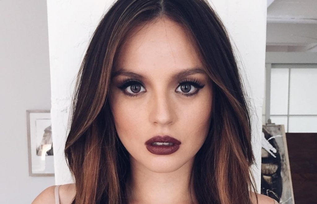 Frauen in diesem Make-up-Look geben Augenbrauen tief schwarz und ihre Lippen sind dunkler Lippenstift. Make-up auf den Augen sollte überhaupt nicht sein.