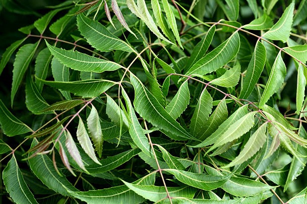 Neem ist ein Baum, der medizinische Eigenschaften enthält. Nagelakne endet, indem sie seine Blätter mahlen oder auf das Gesicht bellen. Kochen der Blätter und beenden Sie das Haar mit dem Waschen von Haaren mit diesem Wasser.