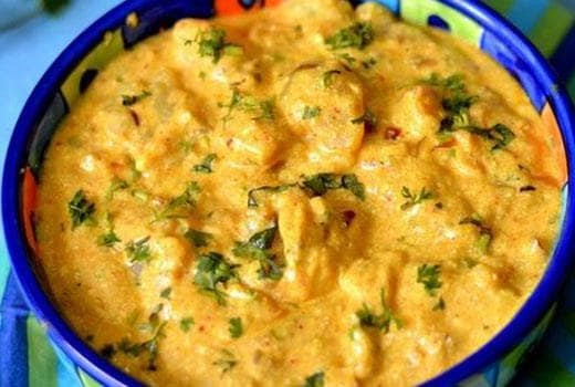 Dies ist die Herrlichkeit der indischen Küche. Durch die Herstellung der kleinen Blüten von Gram Mehl werden sie in der würzigen Soße von Gram Mehl und Joghurt gekocht. Der Kadhi ist in vielen Staaten von Indien hergestellt, aber in jedem Zustand ist der Geschmack des Kadhi anders.