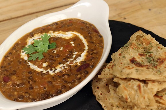 Dies ist auch ein Punjabi-Teller. Was mit dem Puls und Gramm oder Rajama hergestellt ist. Es gibt Zwiebeln, Knoblauch, Ingwer, Tomaten und viele Gewürze werden gegossen. Nach dem Kochen ist es mit Sahne und grünen Koriander verziert.