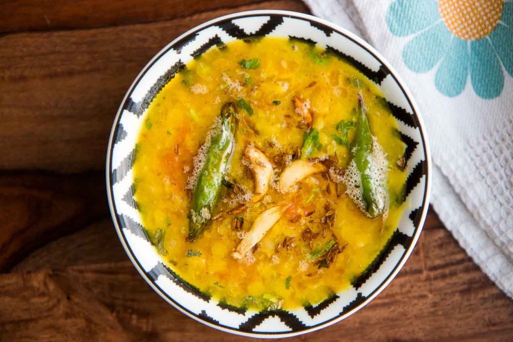 Arhars Puls ist die Herrlichkeit jeder indischen Küche. Durch das Kochen mit dem Kochersalz ist es der Geschmack nach indigenen Ghee, Zwiebeln, Tomaten, rotem Chili, der seinen Geschmack steigert. Es sagt auch Tadka Dal.