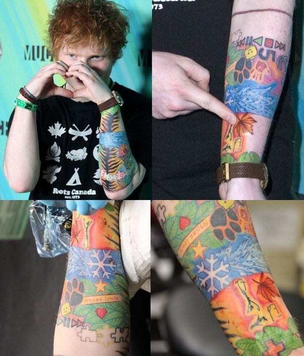 Ed Sheeran mag Tätowierungen wirklich. Er machte seinen Körper mit Tinte gefüllt: mit den Armen, die von Tätowierungen und auch auf der ganzen Haut, sogar auf den Bauch, bedeckt. Seine Liebe zur Serie erfassenPrinz von Bel AirSheeran machte auch ein Tattoo mit dem Satz "Prinz" in der Hand. Er hatte auch zwei Tätowierungen mit typisch englischen Motiven: Label-Design aus Heinz-Tomatensauce und einem Bild einer Tasse Tee. Das andere einzigartige Tattoo im Besitz von Sheeran ist ein Teddybär. Dies zeigt den Anruf seiner Kindheit "Teddy", derjenige, der den Spitznamen liest, der von seinem vollständigen Namen genommen wurde: Wirbel.
