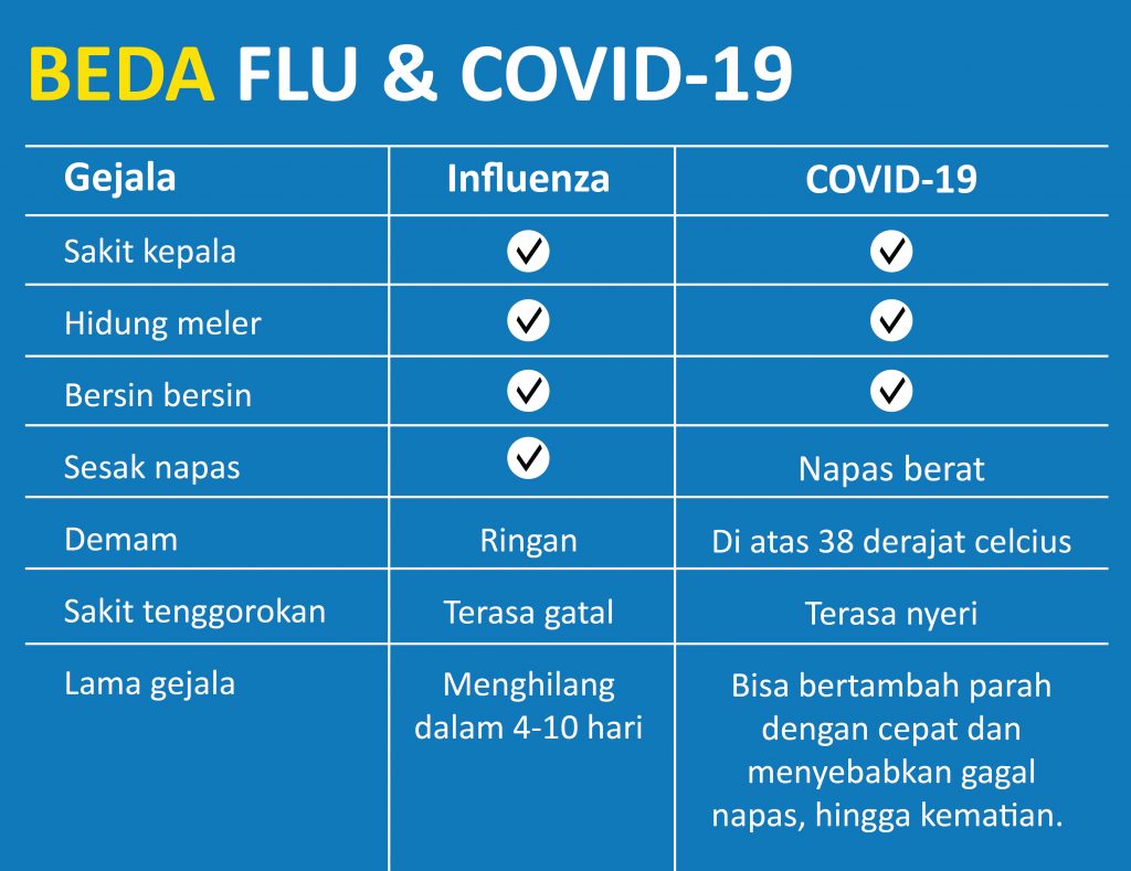 Positive Patienten Covid-19 fühlen sich in der Regel Symptome wie gewöhnliche Grippe, nämlich Fieber, Husten, laufender Nase, Halsschmerzen und Kopfschmerzen. Was jedoch an COVID-19 unterscheidet, ist das Patienten-Erlebnis-Grippe-Symptome, die mit Körpertemperaturen über 38 Grad Celsius begleitet werden, und haben Schwierigkeiten beim Atmen (Atemnot).