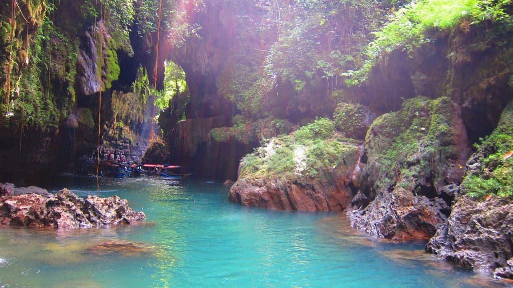 Nach dem Diskutieren diskutieren wir nun die erstaunliche Landschaft in West Java, nämlich grüner Canyon Pangandaran. Das Wasser an diesem touristischen Ort ist grün, so dass es 1993 von französischen Touristen zum grünen Canyon benannt wird. Sie werden Sehenswürdigkeiten finden, die die Seele aus der Höhle und den bildeten Steinen beruhigen. Darüber hinaus können Sie auch den Klang von weichem Wasser hören.