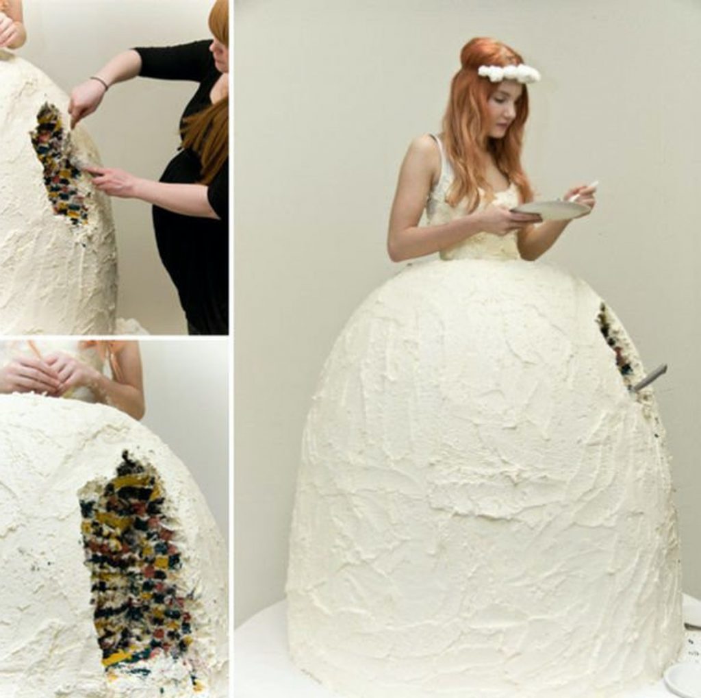 Haben Sie sich nicht vorstellen, dass Sie Hochzeitskuchen in Brautkleidern essen? Wenn nicht, ist es ein Bild oben. Die Braut isst Tar-Gebäck mit einem eher traurigen Ausdruck. Vielleicht war er den Wind erschöpft, ja, also war das Gefühl des Kuchens ziemlich seltsam. Der Teil war, komisch genug, das Hochzeitskleid wurde unten einen Tarpake erhielt. Was machst du?