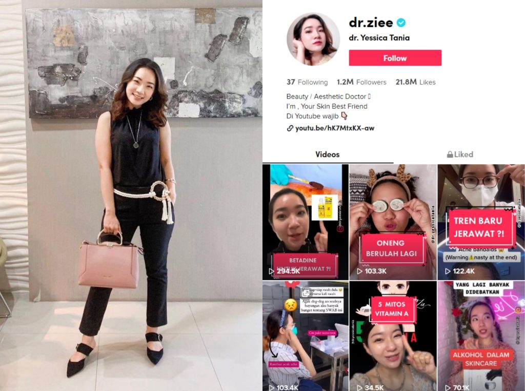 Außerdem gibt es Dr. Yessica Tania mit Ticktock-Kontonamen @ Dr.Ziee. Er ist ein Berater lebender ästhetischer Behandlungen Bali, Indonesien, das 1,2 Millionen hatAnhängerDer ticktock. Frauen, die Yessica fellig genannt oder zie vertraut sind, bieten häufig interessante Tipps zur Hautpflege, von Lebensmitteln, die nicht gut für die Haut sind, was zu Akne auf den Wangen, bis zu einem Hauttransplantat, bis zu einem Hauttransplantat! Erklären Sie wirklich den Inhalt, wodurch das Publikum wichtige Dinge über Gesichtsbehandlungen versteht.
