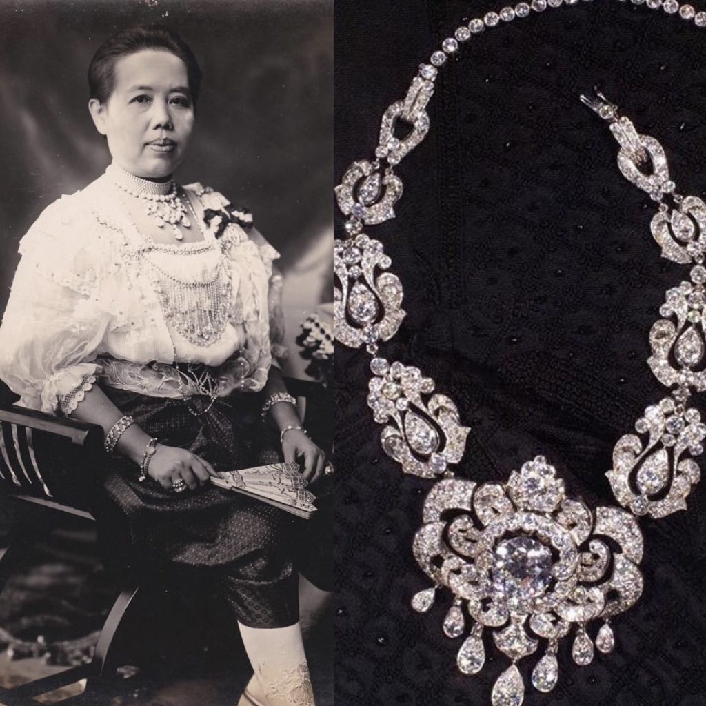 Dieser Schatz ist ein erheaterischer Schatz von der Königin in der 5. Herrschaft. Und kam dann zu ihrem Majestät Prince Petcharat Ratchasuda, der Tochter im König Rama V, und als er in dem Willen aufgenommen wurde, dass das Eigentum und Diamanten, dass er das Eigentum der Chakri-Dynastie besessen hatte, und kürzlich sahen wir das Chao Khuninat. Hat diese Brosche mit gesetzt