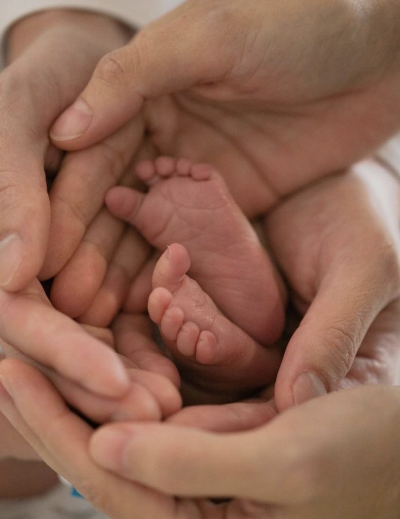 Ist eines der tiefsten Bilder, denn zusätzlich dazu können wir die kleinen Füße des Babys sehen, das gerade die Augen geöffnet hat, auch die Hände von Vater und Mutter. Das wird helfen, den jüngeren zu unterstützen