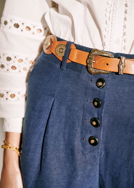 Sobald es in der Mode war, Gürtel an der Taille zu tragen, um es zu betonen. Anschließend ist dieser Trend gegangen. Und wie wir wissen - Mode cyclic, und deshalb können Sie Ihre Lieblingsgürtel sicher zurückholen! Drehen Sie sie auf hohen Jeans mit einem weißen Hemd, unter einem klassischen Anzug mit einer Jacke oder kombinieren Sie mit Sommerkleidern und betonen Sie die Taille.