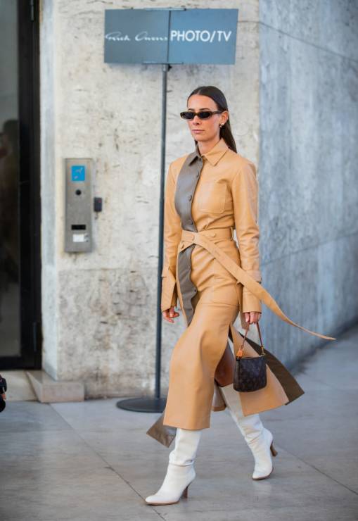Die Haut, die in der Saison 2020 seine Wiederbelebung erscheint, blieb nicht weiter. Für Sommer- und Frühlingskleidung verwendeten die Hersteller eine dünne Haut, helle Farbtöne.