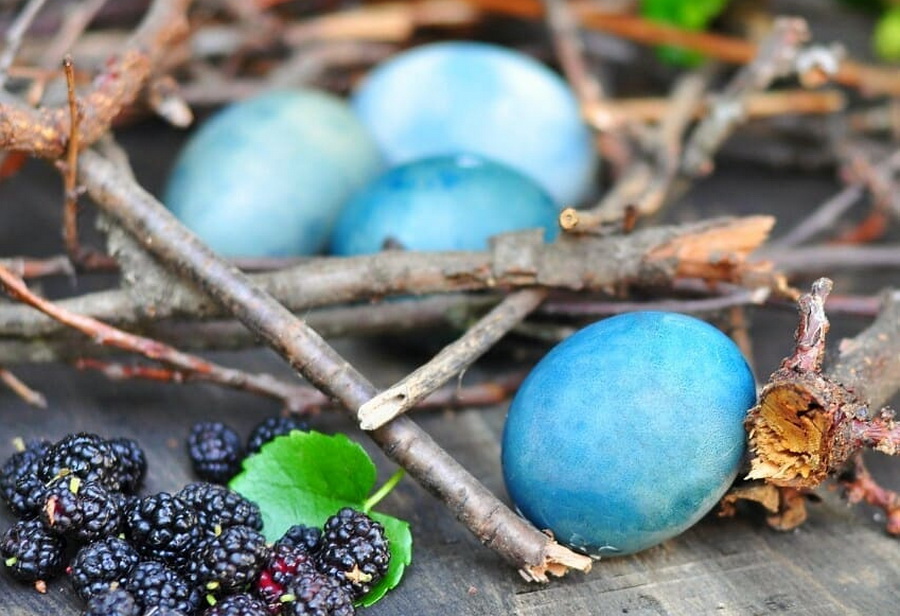 7. Maulbeere - Ein weiterer natürlicher Farbstoff, die schönen Farben Eier. Pysanka wird blau gesättigt. Rost einfach nur geschweißt Eier mit Saft Beeren. Jetzt ist es kein Maulbeere Saison, aber im Sommer ist es notwendig, das Glas Beeren, so dass im nächsten Jahr Überraschung jeder zu Ostern einzufrieren.