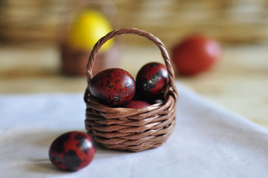 3. Zwiebel Schale - Der beste natürliche Farbstoff, der mit reichen Eier malt in rot garantiert. Sie können beide weiße und braune Eier verwenden. Auf einem Liter kochendem Wasser nehmen 5 große Handvoll Schale. Lassen Sie uns stehen für zwei Stunden. Nachdem die Flüssigkeit aus der Schale zu trennen, 1 Esslöffel Salz und in dieser Lösung Eier zu kochen, auf herkömmliche Weise. Wenn Sie die Eier gehen mit einem Marmormuster wollen, kochen Eier zusammen mit Schale.