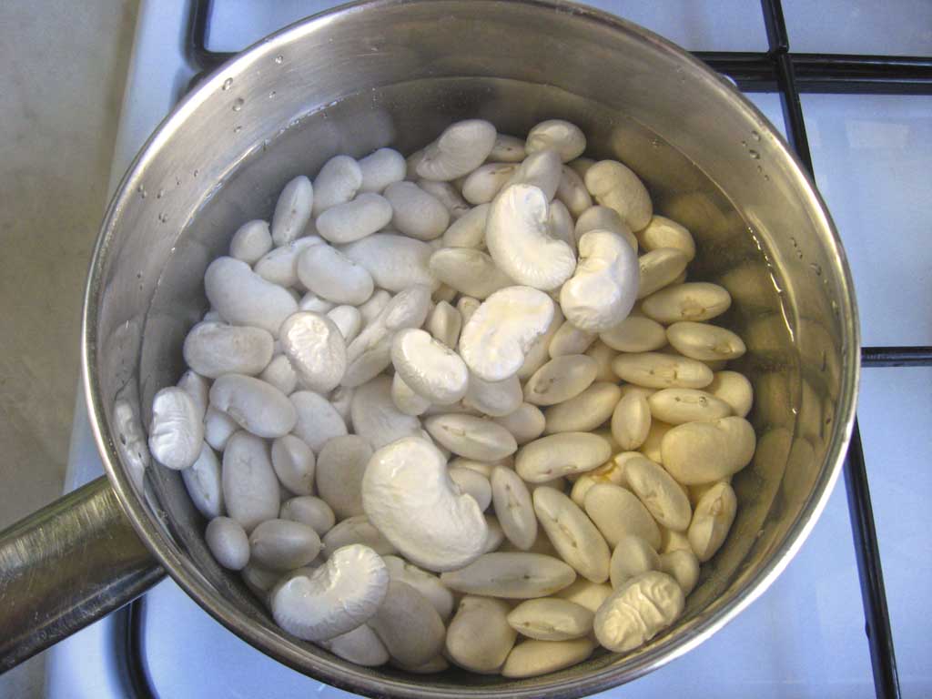 Obligatorische Zutat in einem traditionellen Bohnenrezept. Aber dass es nicht bitter und hart ist - es ist für eine Nacht vormessend. Aber auch wenn Sie es vorbereitet haben, sollten Bohnen zuerst an die Brühe gefaltet werden.