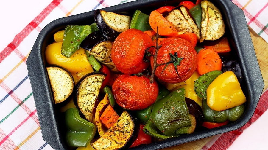 Für ein solches Abendessen können Sie Zucchini, Auberginen, Gemüsepfeffer, Kartoffeln, Zwiebeln, Tomaten und Grüns verwenden. Alles Gemüse muss ggf. gründlich gewaschen werden, um von Herzen zu säubern und zu schälen. Gemüse auf mittlere Stücke schneiden. Fügen Sie Salz, Olivenöl, Pfeffer und eine Mischung aus italienischen Kräutern oder Oregano hinzu. Mischen Sie gründlich und legen Sie sie in eine hitzebeständige Form. Dass sie schneller vorbereitet werden, können Sie die Form der Folie abdecken. Und nach einer halben Stunde zum Entfernen, so dass sie es verschlossen machen.