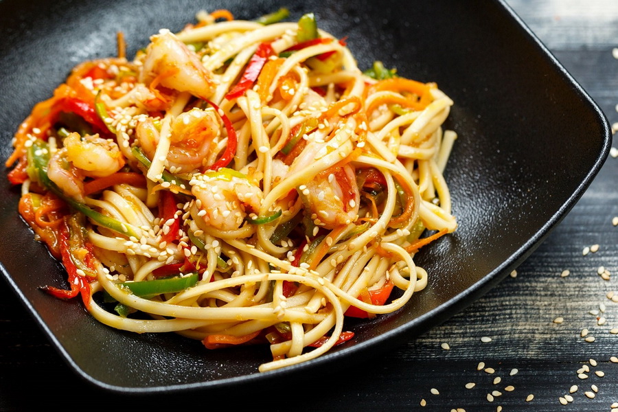 Für dieses Abendessen nimmt es Nudeln, Buchweizen oder Weizen. Auch Sojasauce, Gemüseöl, Zwiebeln, Karotten, körniger Knoblauch, süßer Pfeffer und Sesamsamen. Lokin-Download für Anweisungen. In einer Bratpfanne mit einem dicken Boden auf einer kleinen Ölmenge, die feingeschnittene Zwiebel, karrochene Strohhalme und Pfeffer. Salz und körnige Knoblauch hinzufügen, um zu schmecken. Fügen Sie am Ende 2-3 Löffel Sojasauce hinzu. Gemüse mit Nudeln mischen. Für die Einreichung können Sie frische Grünen, Tofu und Sesamkäse verwenden.