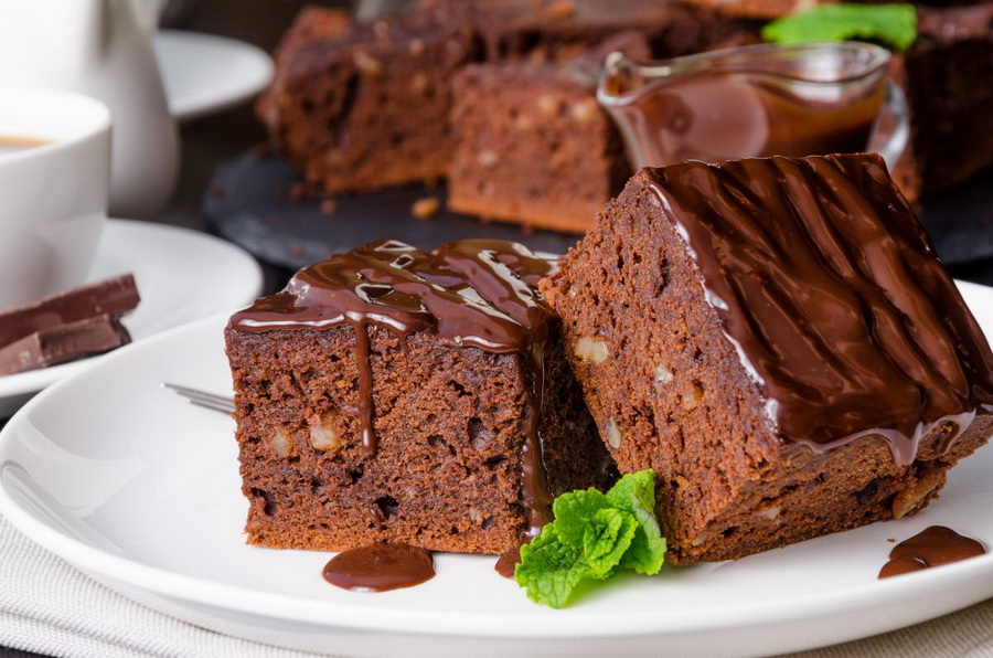 Schokoladennachtisch, der nicht schwer zu kochen ist. Schmelze in einem Wasserbad 180 g schwarze Schokolade. Fügen Sie 130 g Butter bei Raumtemperatur zu einer warmen Schokolade hinzu. 3 Eier, die mit 120 g Zucker und einem Prise Salz zu einem dichtem Schaum schneiden. Mischen Sie die geklopften Eier mit einem Ölgemisch. 160 g Mehlmischung mit 1 TL den Bruch für den Teig. Und schrittweise in den Mehl in den Teig eindringen. Sie können eine Handvoll Nüsse hinzufügen. Formular mit Pergamentpapier schrumpfen und in das Gebäck übersetzen. Backen Sie 40-45 Minuten in den Erhitzen auf 180 ° C Ofen. Dann lassen Sie die Händler gesäumt, mit schwarzen Schokolade bewässert und in Stücke schneiden.