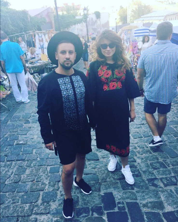 Star Coupe Shared Fotos eines gemeinsamen Fotoshootings im ukrainischen traditionellen Stil. Katerina hat ein Kleid von Burgund mit weißen bestickten Mustern gewählt, das in Form von Knöcheln an den Ärmeln und einer Division von Kleidern fortgesetzt wird. Der weltliche Führer stellte fest, dass nationale Kleidung unser genetischer Code ist und stolz ist, weit über die Ukraine hinaus bekannt zu sein.