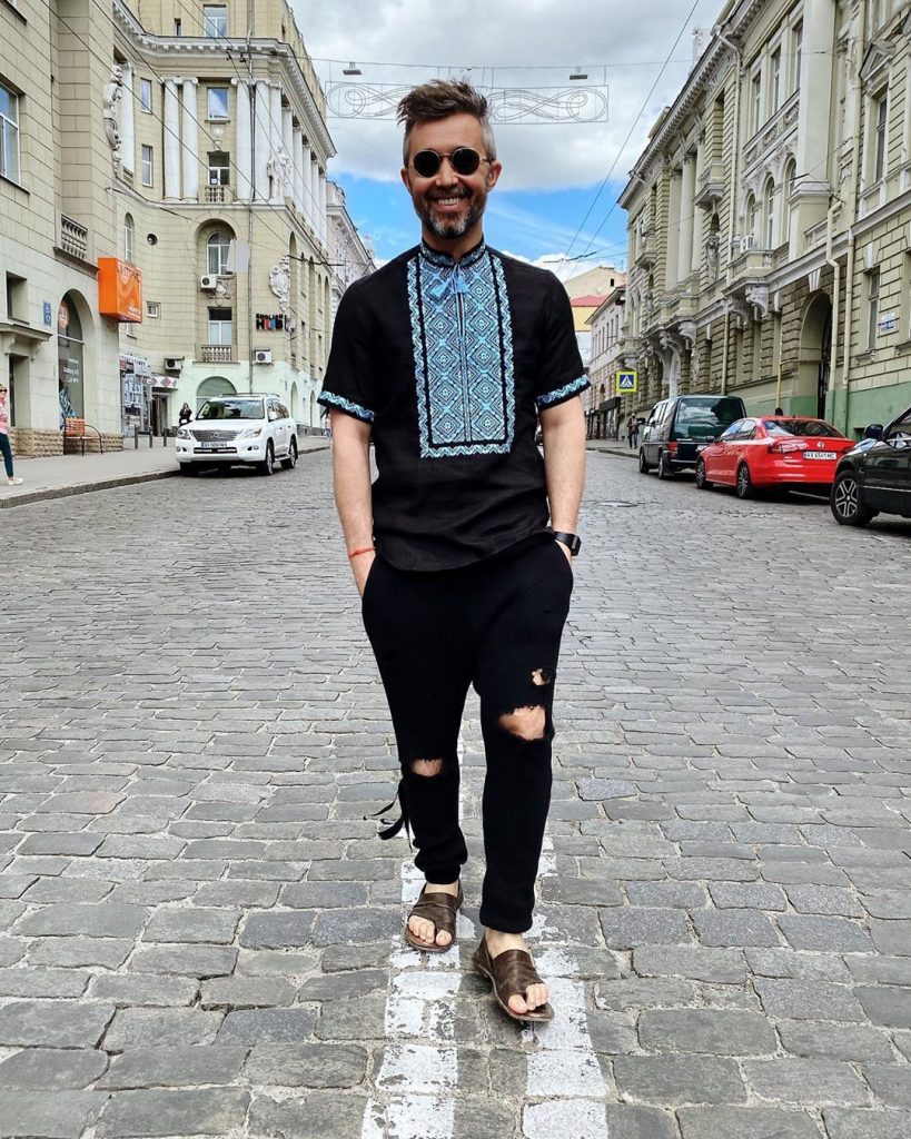 Der Sänger wurde von einem neuen bestickten Hemd versteift, das er einen bekannten ukrainischen Designer Julia Mogrch gab. Sogar Schuhe an diesem Tag wählte Dzidzo symbolisch als Zugehörigkeit.