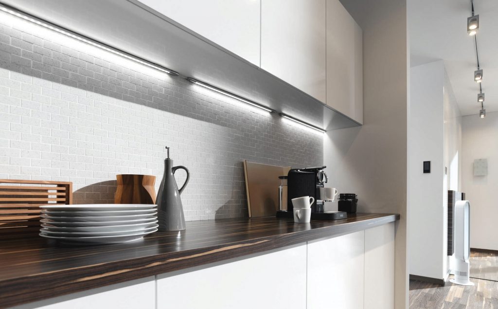 Ein Kronleuchter, auch sehr hell, wird definitiv nicht genug Licht bereitstellen. Darüber hinaus ist es normalerweise hinter dem Rücken, so dass der Arbeitsbereich in diesem Fall in der Dunkelheit bleibt. Wie viele empfindliche Prozesse in der Küche auftreten, wird daher die gerichtete Beleuchtung sehr nützlich sein, wenn Sie in verschiedenen Küchenecken arbeiten müssen. Elementary In diesem Fall werden die Augen weniger müde sein.