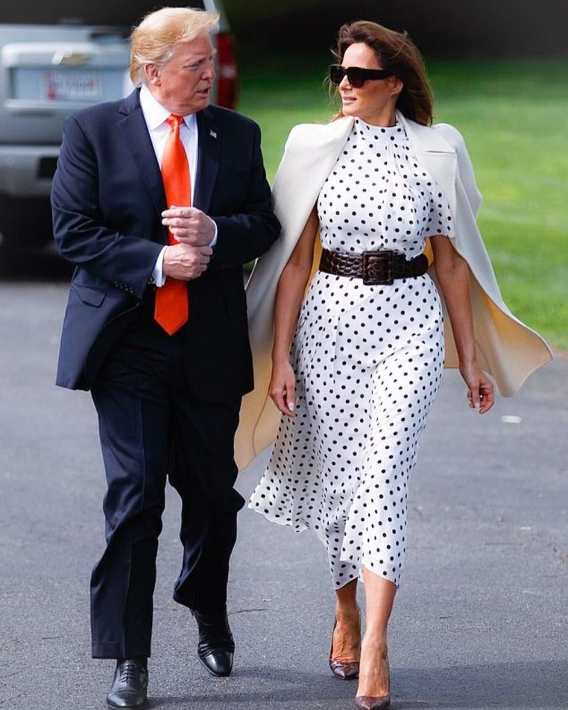 Die erste Dame America Melania Trump und ihr Vorgänger Michel Obama haben mehrere Bilder mit Kleidern in Erbsen in seiner Garderobe. Die Medien erschienen Informationen, dass nach der Ehefrau des Expresudents auf dem NBC-Kanal auf dem NBC-Kanal in einem einfachen Kleid in Erbsen für 35 $ erschien, er wurde in allem am beliebtesten. Die derzeitige erste Dame bevorzugt exklusiver und Markenkleider, die häufig für offizielle Techniken wählen.