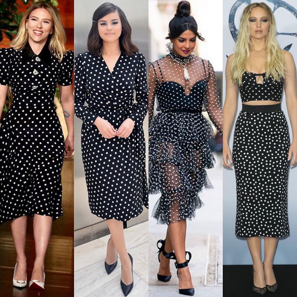 Mode für "Erbsen" ergab die ganze Welt in ein paar Jahrzehnten. Der Name der Polka-Punkte Dieser Druck erhielt zu Ehren des Tanzes, der am Ende des 19. Jahrhunderts überall tanzte. Er war so beliebt und arrangierte darauf, dass alles, was in seiner Ehre benannt wurde, ausdrücklich beliebt wurde. Anschließend begannen spektakuläre Kleidung in Erbsen, Tanzen zu nähen. Auf dem Modepodium brachte der berühmte christliche Dior zum ersten Mal die Kleidung aus. Die Bildung einer Print-Popularität und der von Prominenten gibt ihm einen Vorteil in unserer Auswahl.