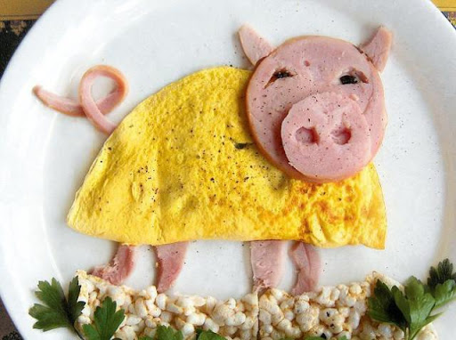Verwandeln Sie das Essen zu einem schönen Ritual, damit das Kind auf jede Mahlzeit wartete und suchte, um zu sehen, dass dies diese Zeit erwartet. Nützlicher Reis wird auf einen Teller ansehen, wenn er in Form eines Hasens in Form eines Bunnys liegt, der entlang der Salatfelder spaziert, ein Karottenohr und Augen aus Rettich.
