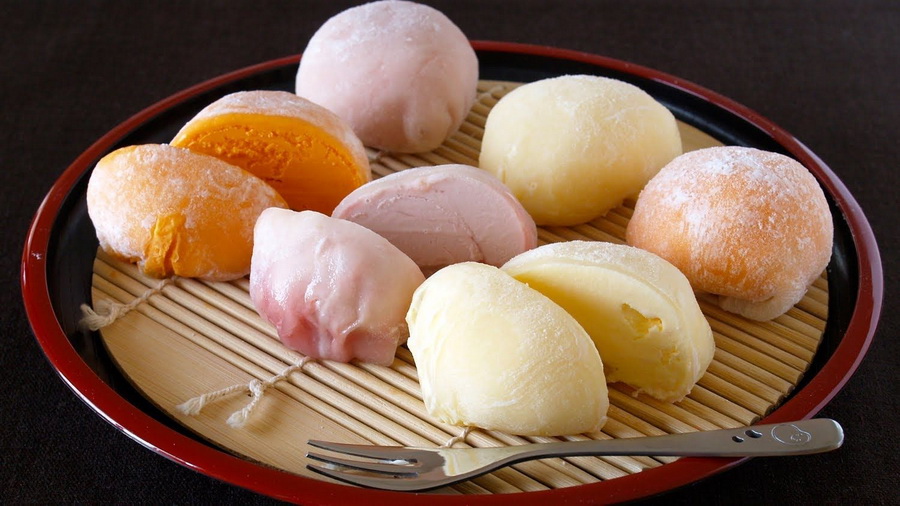 Für die Vorbereitung der nationalen japanischen Paste benötigen Sie 1 Glas Reismehl, 1 Tasse Zucker, etwa 1 Glas Wasser und 2 Tropfen Essig. Wenn Sie einen Farbstoff hinzufügen, können Sie verschiedene Farben erhalten. Für einen Füller können Sie eine Schokoladenpaste, ein Marmelade oder Obst oder Beeren nehmen. Wir machen Motto mit Eiscreme, ein solches Dessert ist in Sommerhitze relevant. Reismehlmischung mit Zucker und einem Lebensmittelfarbstoff, fügen Sie Wasser mit Essig hinzu und mischen Sie in einen homogenen Zustand. Zeigen Sie den Mikrowellenofen auf der Macht von 650-700 W aus und wärmen Sie den Teig 3-mal in 1,5 Minuten. Mischen Sie kontinuierlich. Wenn der Teig ein Bach ist cool ist, gießen Sie die Arbeitsfläche der Stärke auch auf die Hände. Machen Sie aus dem Teig eine Wurst, die von 8 gleichen Teilen abgedeckt ist. Jeder Teil rollt in einem dünnen Pfannkuchen in der Mitte die Füllung und wickeln Sie die Kanten in die Mitte. Einen runden Kuchen bilden. Mit Zuckerpulver bestreut und an den Tisch einreichen.